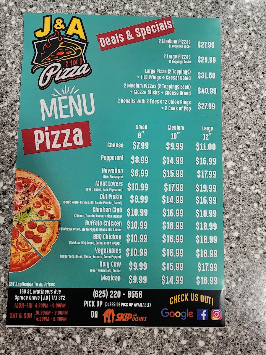 Pizza lovers will find themselves drawn to the BBQ Chicken Pizza, which combines smoky barbecue sauce with juicy chicken, delivering a sweet and tangy taste with every slice. Another popular choice is the Garlic Bread with Cheese, a perfect starter or side, with its crispy texture and rich, cheesy topping that pairs wonderfully with any main course. For fans of something unique and indulgent, the Our Famous Donair Poutine is a must-try. This dish combines the beloved Canadian poutine with the flavors of donair, creating a deliciously hearty combination of fries, gravy, cheese curds, and seasoned meat.